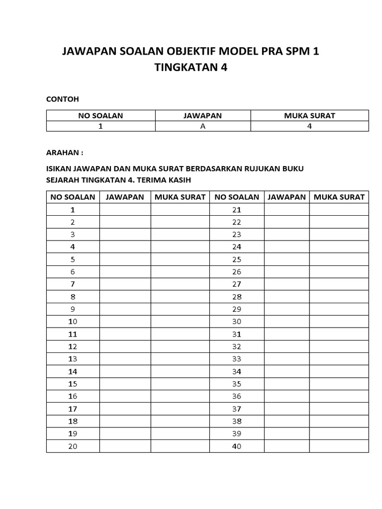 Jawapan Soalan Objektif Model Pra Spm 1 Tingkatan 4 Pdf
